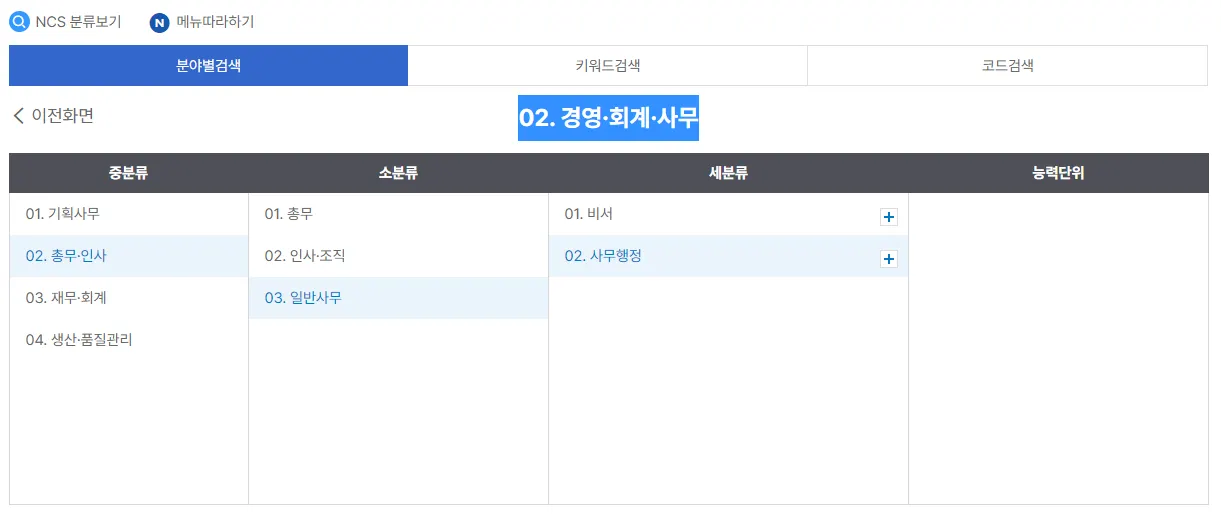 02. 경영·회계·사무 - 02. 총무·인사 - 03. 일반 사무 - 02. 사무행정에 있는